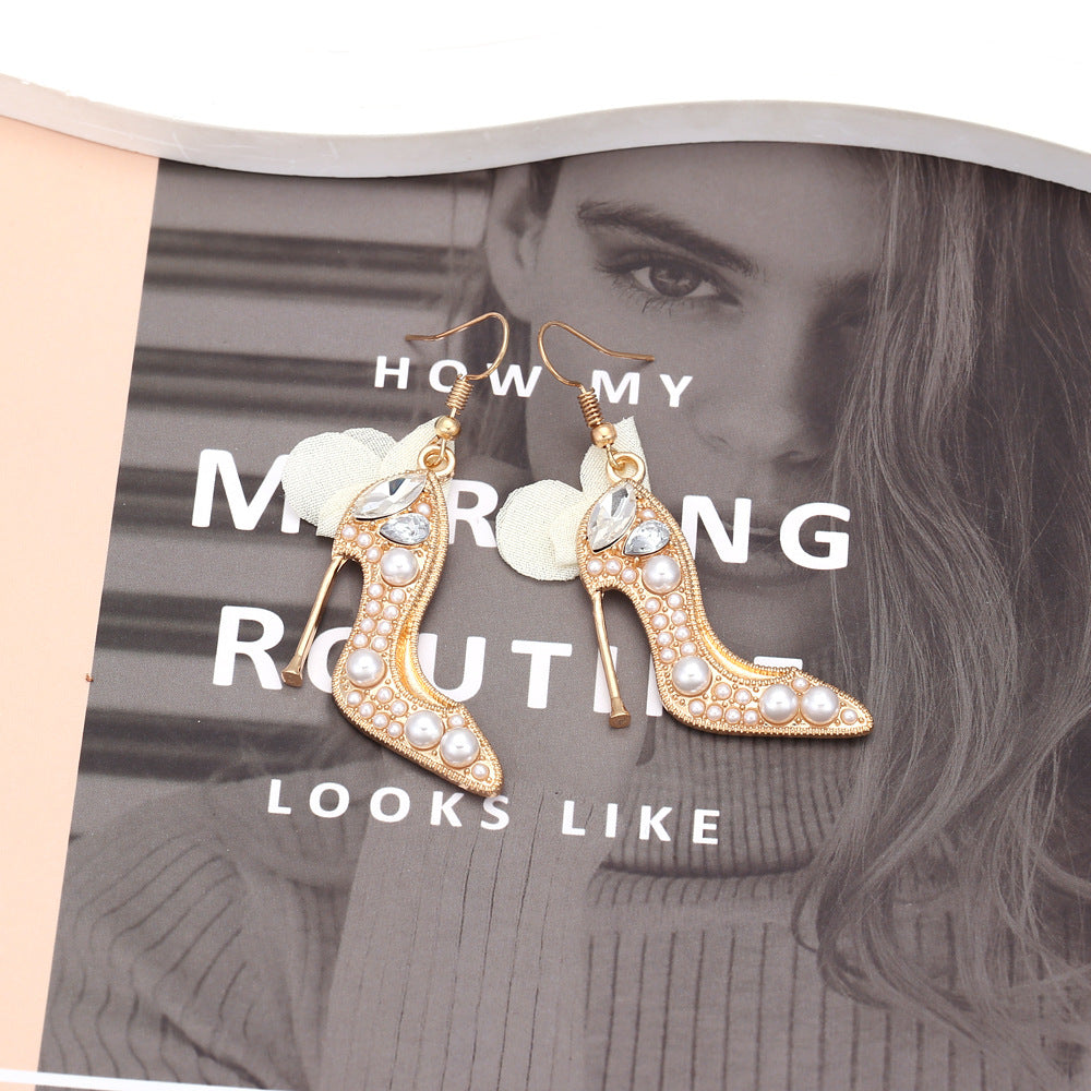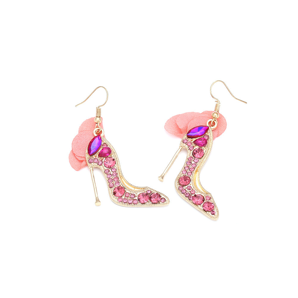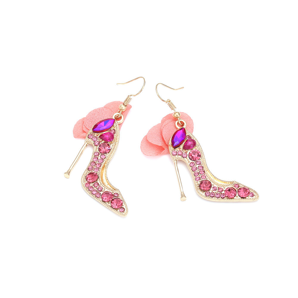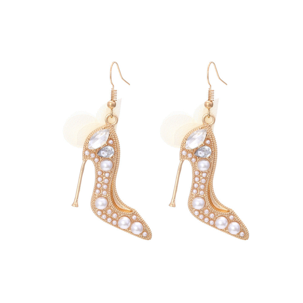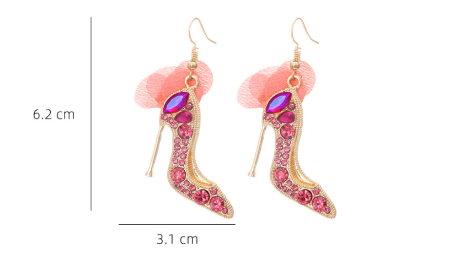 1 Pair Casual Sweet High Heel Net Yarn Alloy Rhinestones Drop Earrings