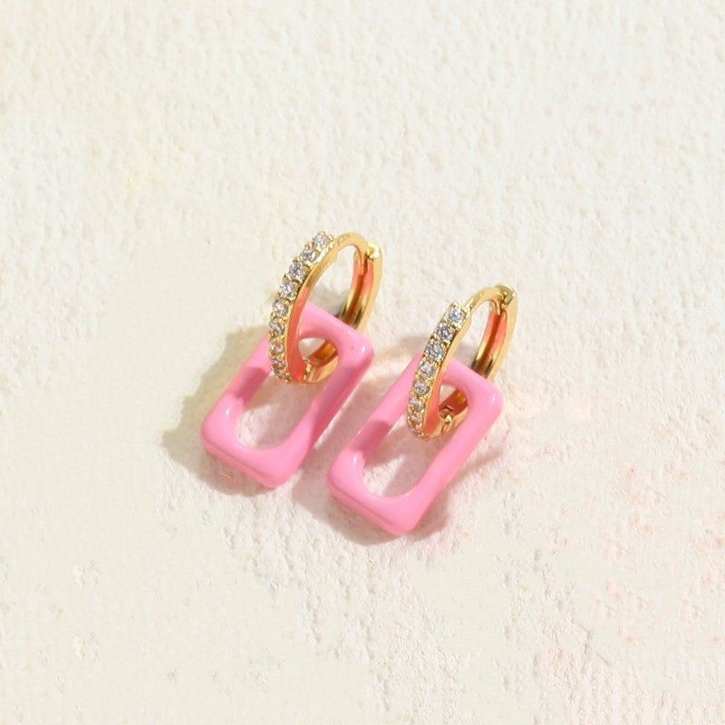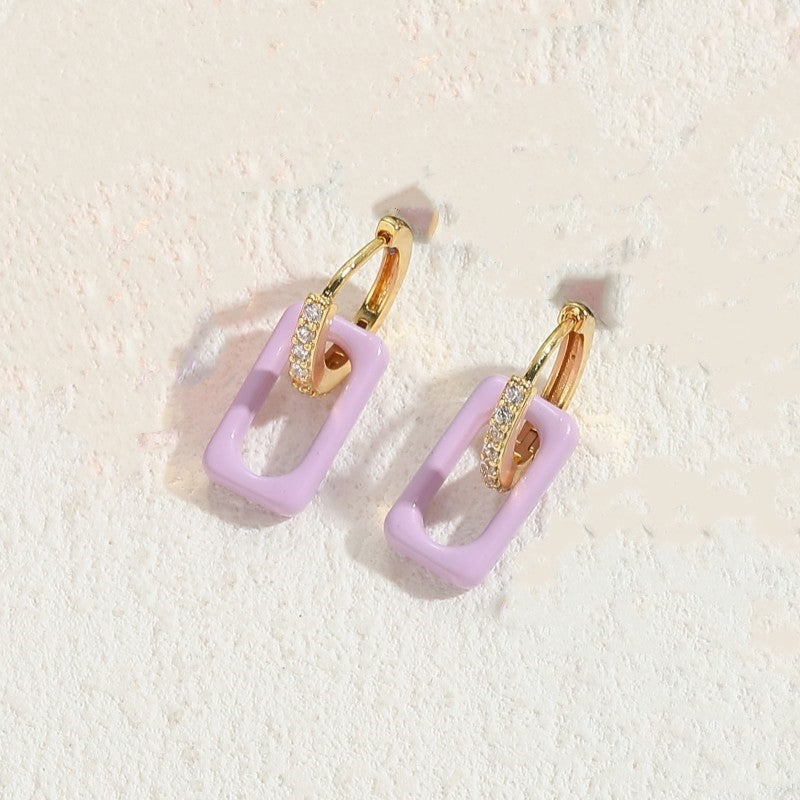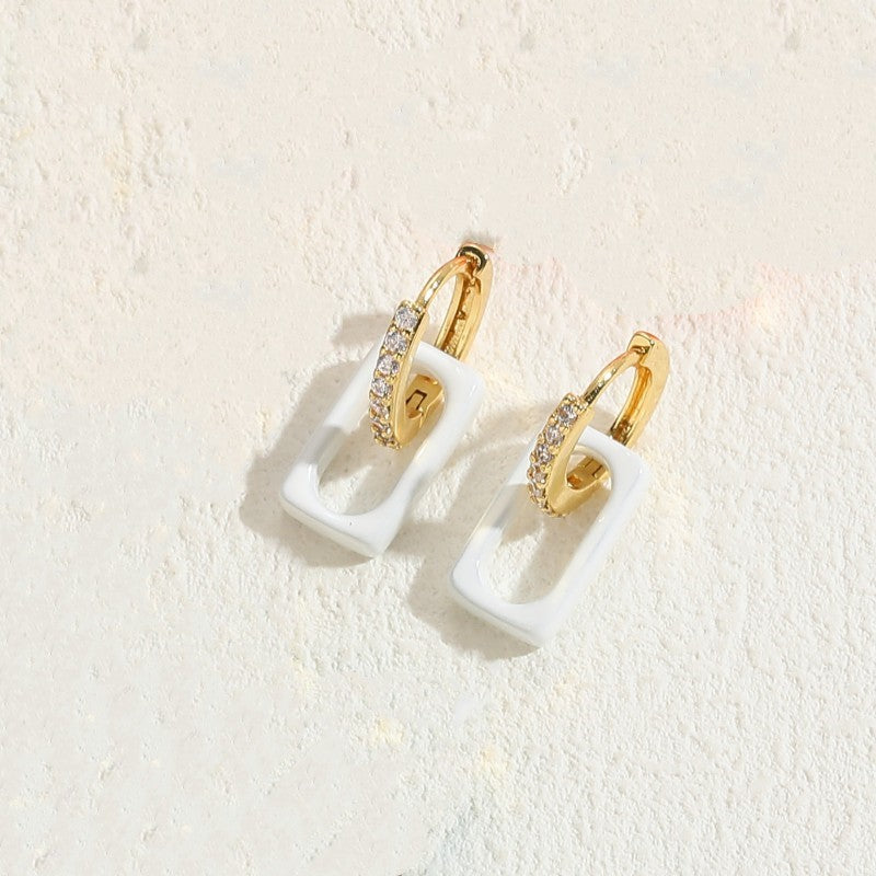 1 pair elegant classic style square enamel plating inlay copper zircon 14k gold plated earrings