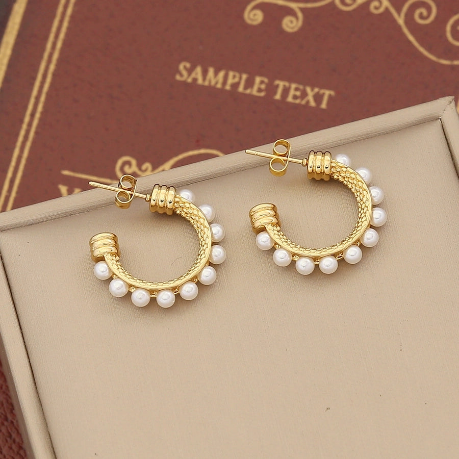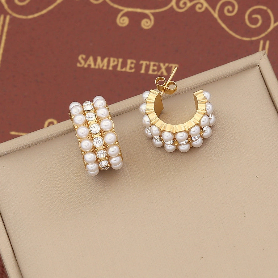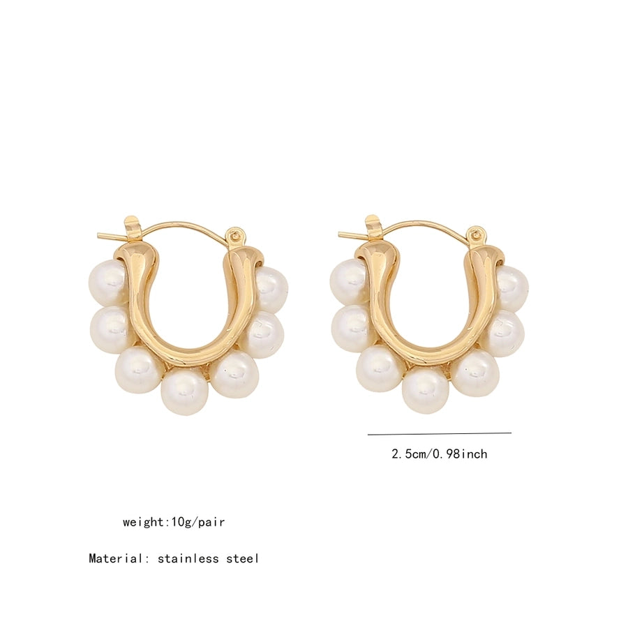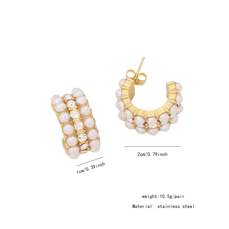 1 Pair IG Style Simple Style C Shape Solid Color Inlay Stainless Steel Artificial Pearls Zircon 18K Gold Plated Ear Studs