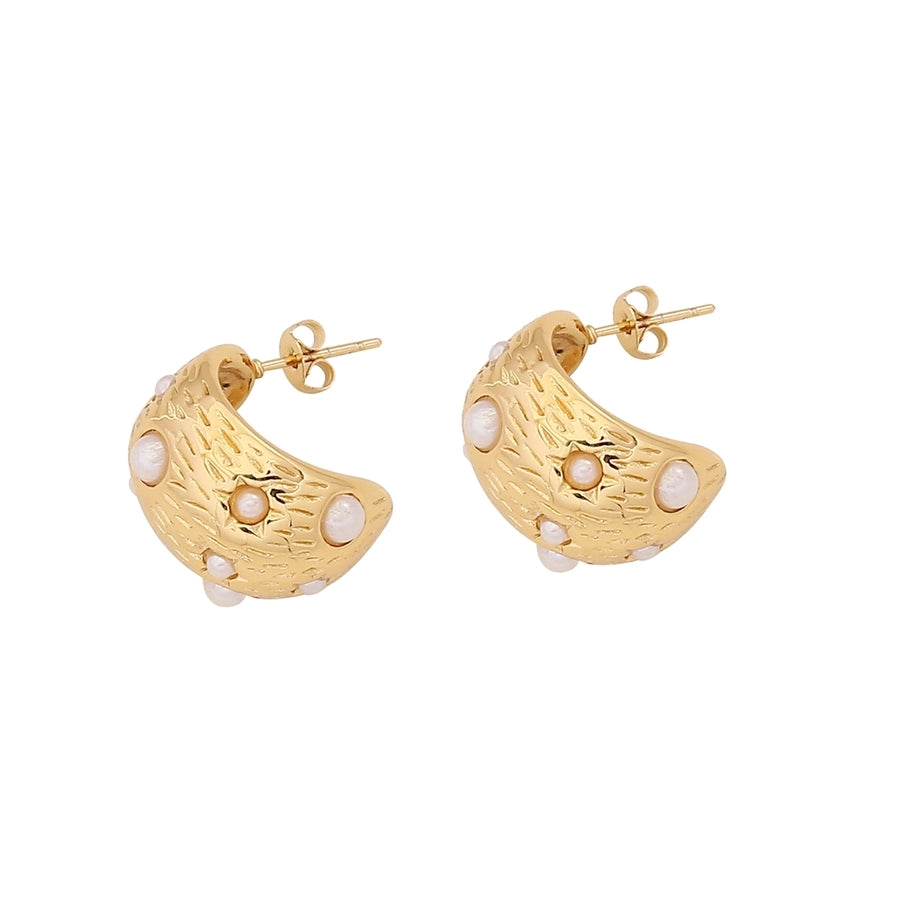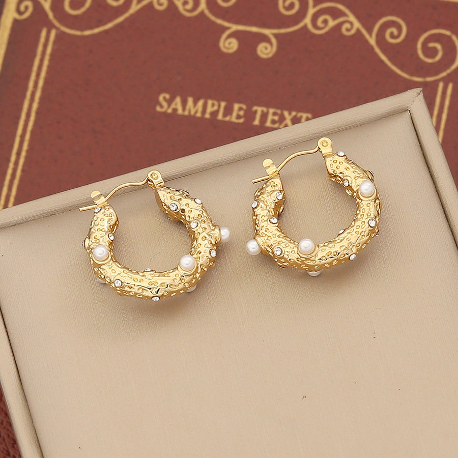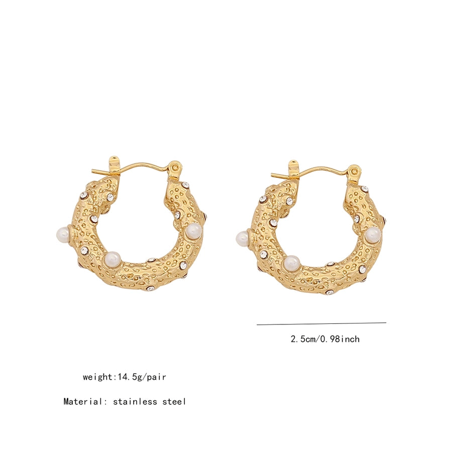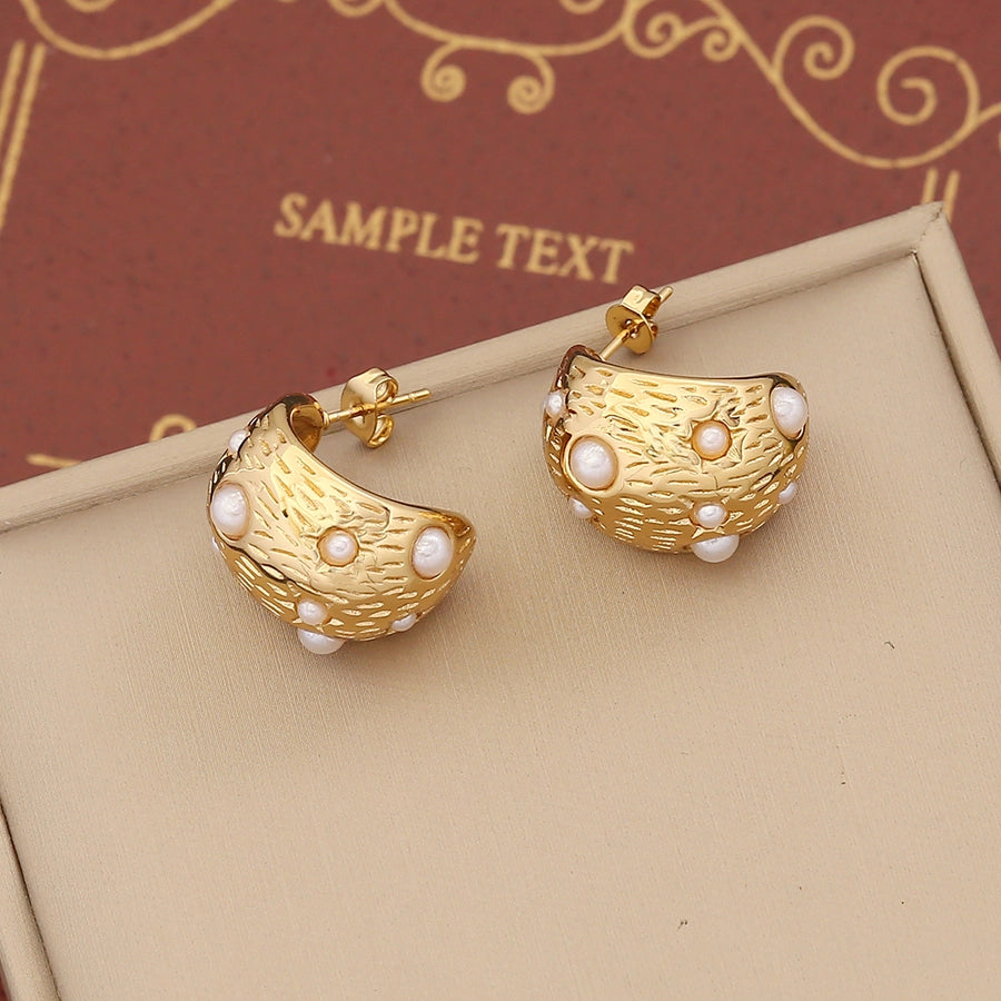 1 Pair IG Style Simple Style C Shape Solid Color Inlay Stainless Steel Artificial Pearls Zircon 18K Gold Plated Ear Studs