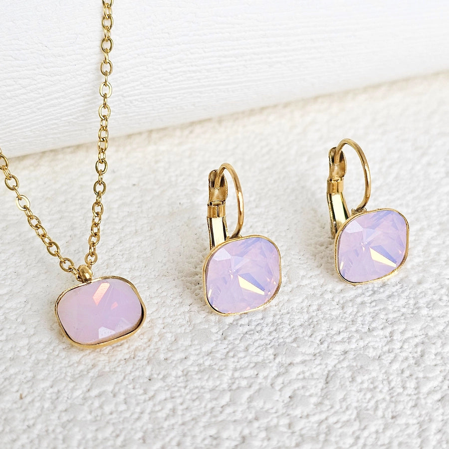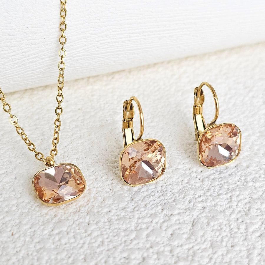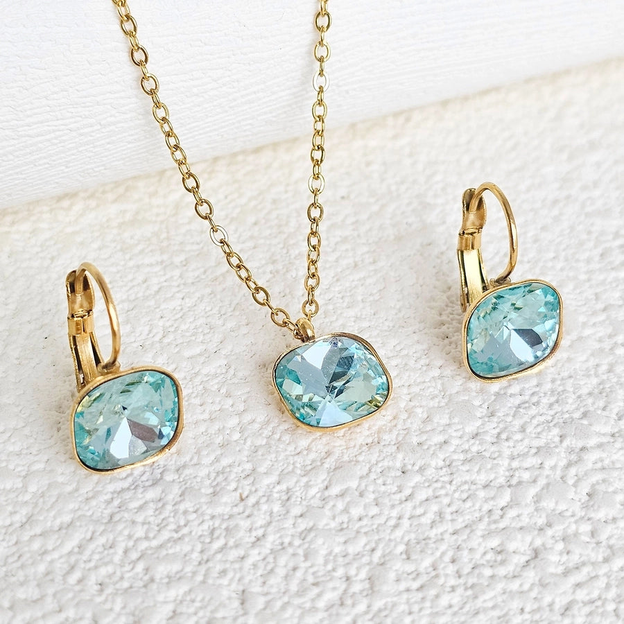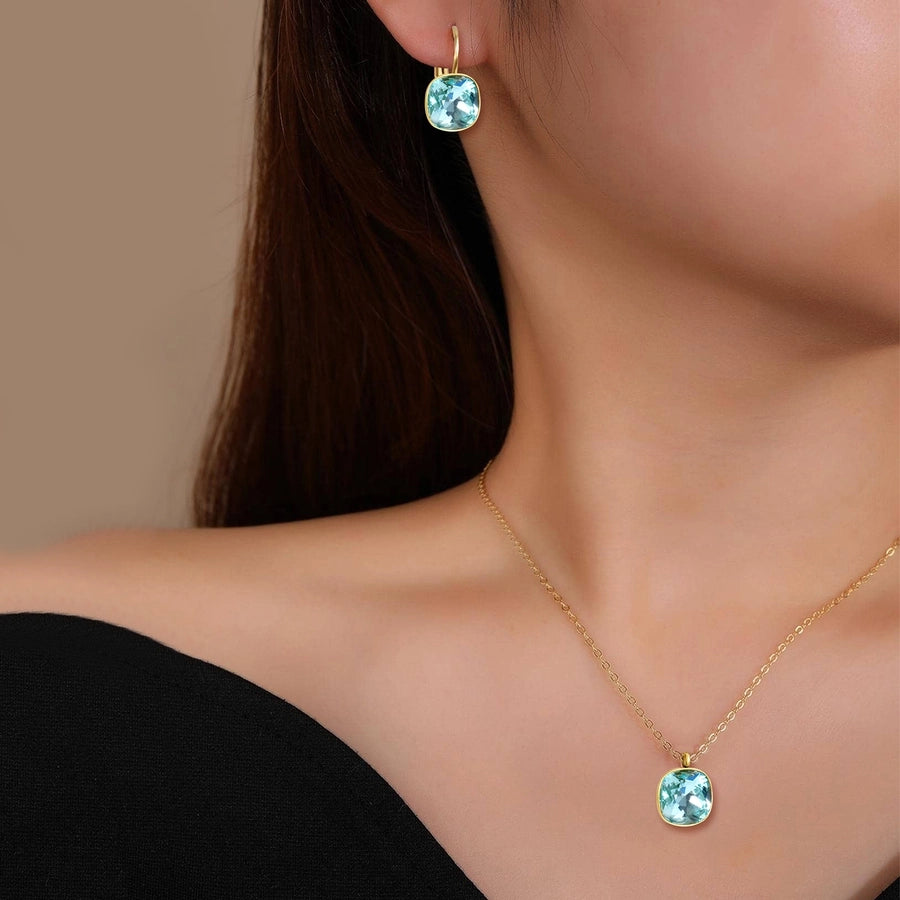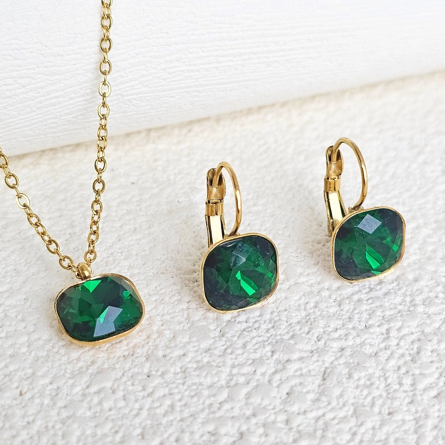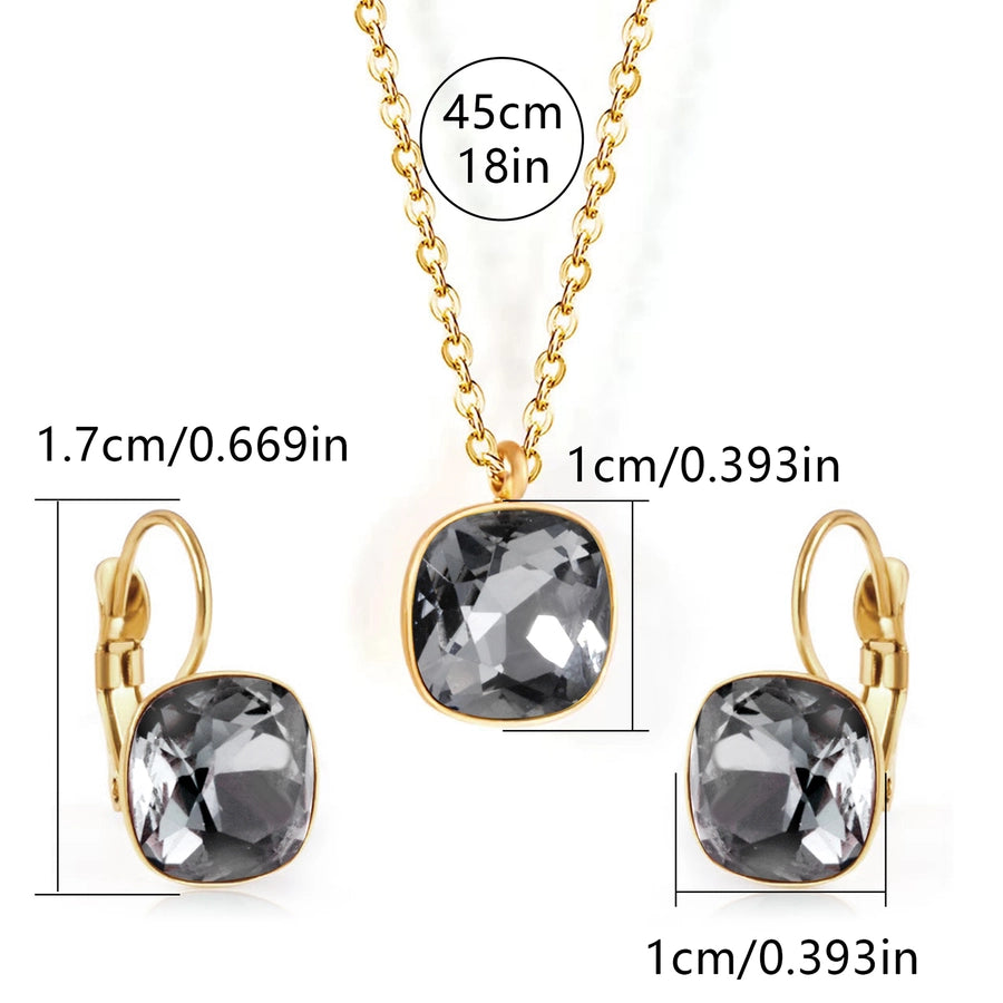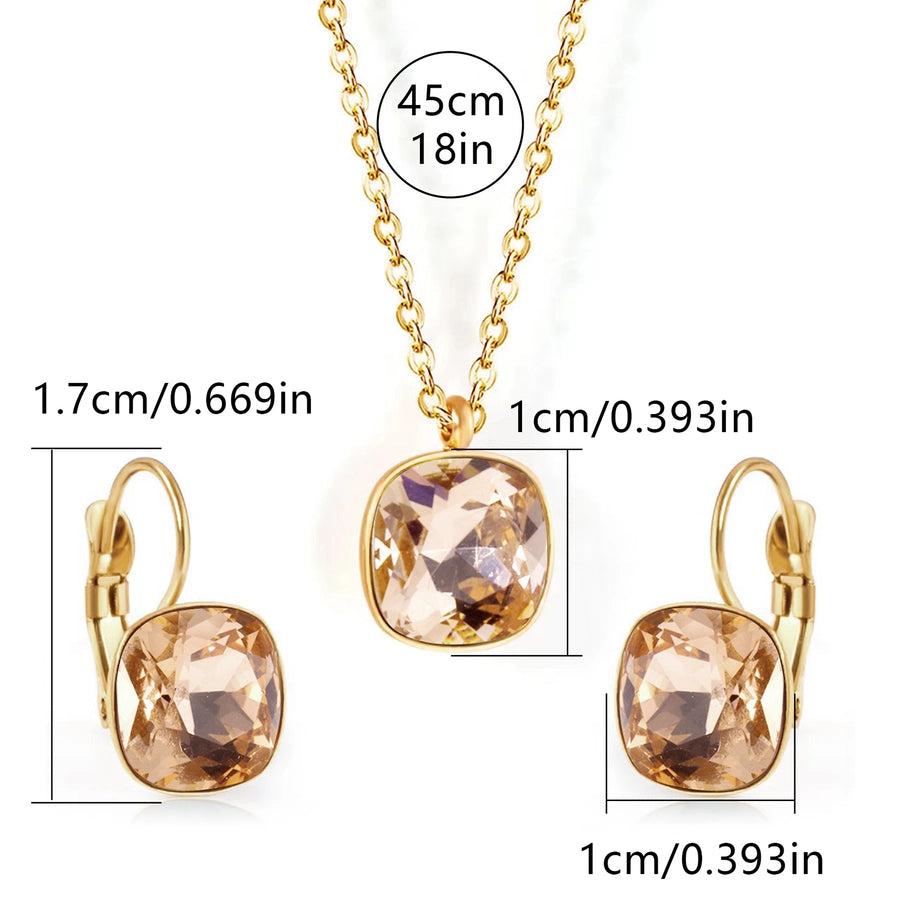 304 Stainless Steel Gold Plated Simple Style Shiny Inlay Square Zircon Jewelry Set