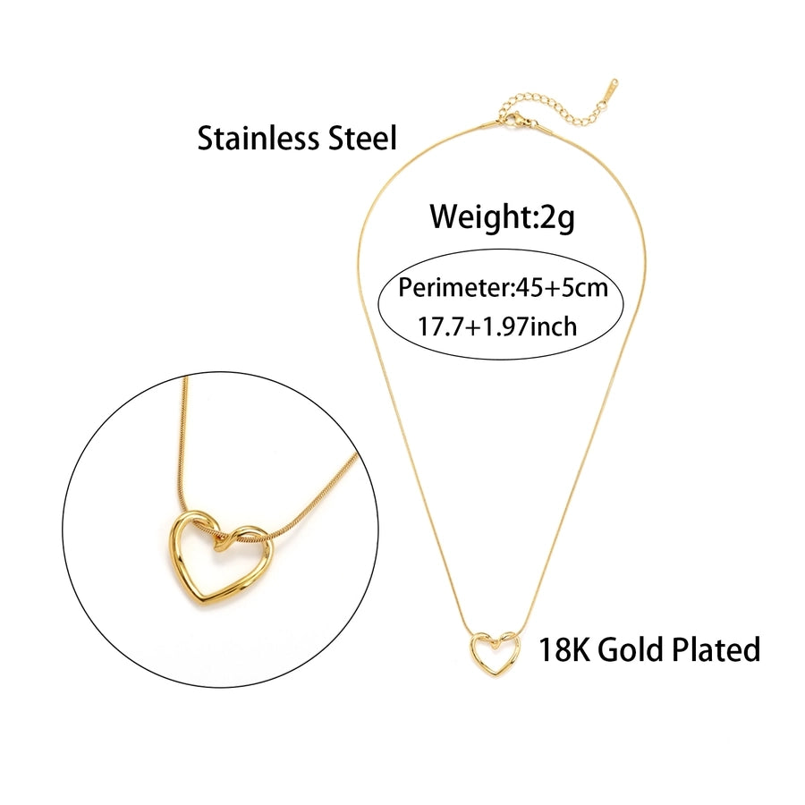 elegant simple style heart shape stainless steel hollow out 18k gold plated pendant necklace