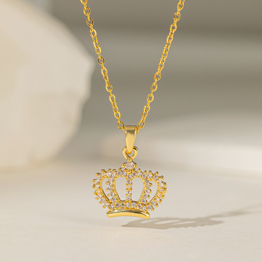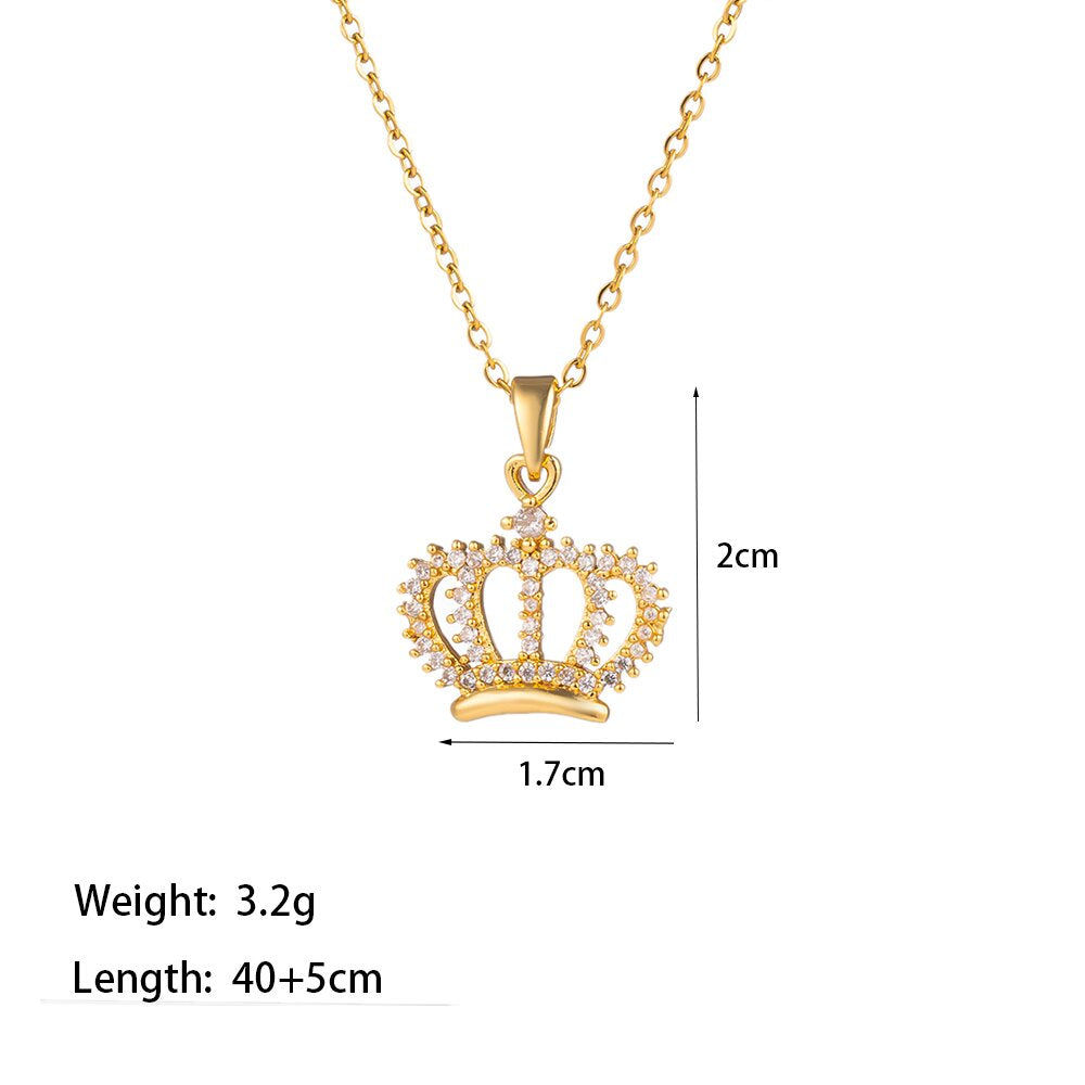 Titanium Steel 18K Gold Plated Casual Simple Style Commute Crown Feather Flower Inlay Artificial Rhinestones Pendant Necklace