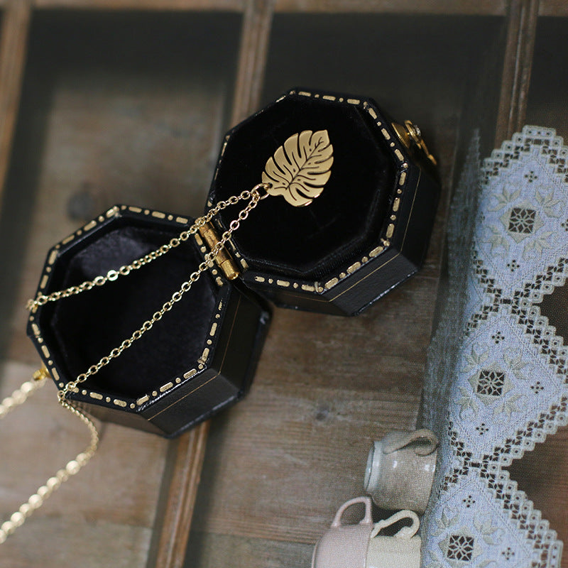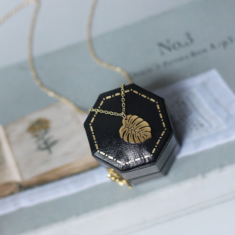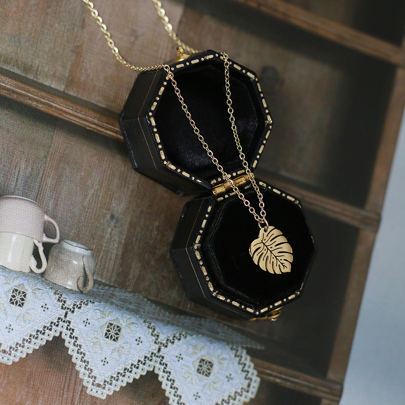 vintage tropical rainforest palm leaf titanium steel necklace
